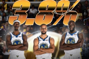 截止目前,勇士本賽季的奪冠的說是概率是3.8%。