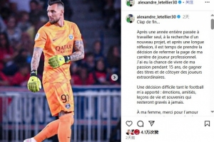 體育資訊10月15日訊 34歲前巴黎圣日耳曼門(mén)將萊特利爾在社媒宣布,結(jié)束15年的職業(yè)生涯。