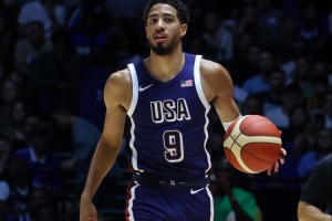 2024年,哈利伯頓入選美國男籃12人大名單,并且獲得了巴黎奧運金牌。