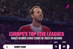 體育資訊10月16日訊 根據(jù)OPTA的統(tǒng)計,自2023-24賽季以來,凱恩是五大聯(lián)賽進(jìn)球最多的球員,他69場聯(lián)賽打進(jìn)73球。