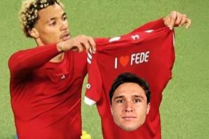 埃基蒂克曬出自己在對(duì)陣南安普頓的比賽中脫衣慶祝的照片,并在球衣上加上了小基耶薩的頭像,并配文“我??費(fèi)德(費(fèi)德里科-基耶薩的昵稱)”。