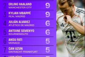 體育資訊10月17日訊 本周末,歐洲五大聯(lián)賽將重燃戰(zhàn)火。Squawka盤(pán)點(diǎn)了本賽季迄今為止五大聯(lián)賽進(jìn)球數(shù)情況,凱恩以11球居首,哈蘭德和姆巴佩均打進(jìn)9球緊隨其后。