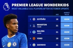 體育資訊10月18日訊 德轉(zhuǎn)在北京時(shí)間本月17日更新英超球員身價(jià),同時(shí)列出了英超U21球員身價(jià)榜,埃斯特旺、亞當(dāng)-沃頓、巴萊巴三人6000萬(wàn)歐身價(jià)最高。