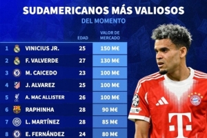 體育資訊10月18日訊 德國轉(zhuǎn)會市場更新了部分球員的身價,并列出南美球員德轉(zhuǎn)身價排名,維尼修斯、巴爾韋德排名前兩位。