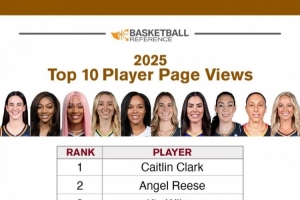 體育資訊10月18日訊 數(shù)據(jù)網(wǎng)站Basketball Reference報道,本賽季賽季進行期間站內(nèi)瀏覽量最高的WNBA球員TOP10,其中克拉克第一、里斯第二、阿賈-威爾遜第三。