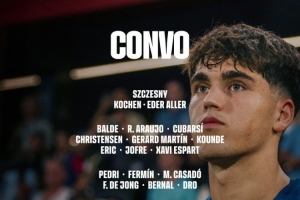 體育資訊10月18日訊 北京時間今天22點15分,巴薩將在西甲第9輪比賽中主場對陣赫羅納,巴薩公布了此役的球員名單,亞馬爾、拉什福德、費爾明在列,萊萬、拉菲尼亞、費蘭-托雷斯、奧爾莫、霍安-加西亞、加維缺席。