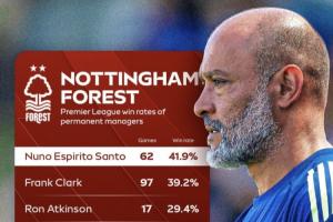 根據(jù)數(shù)據(jù)統(tǒng)計(jì),努諾是森林隊(duì)史英超勝率最高的主帥。努諾率隊(duì)出戰(zhàn)62場英超比賽,勝率達(dá)到了41.9%。上賽季努諾率隊(duì)拿下英超第7,獲得歐聯(lián)杯資格。