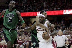 2010年東部半決賽(騎士VS綠軍)G4中,詹姆斯在完成后場搶斷后準備上籃,緊隨身后的皮爾斯采取犯規(guī)戰(zhàn)術(shù),兩人互相抱著摔入了觀眾席。詹姆斯的母親在現(xiàn)場觀戰(zhàn)憤怒不已,詹姆斯在一旁對著母親大吼道:“Sit down!(你給我坐下?。?/p>