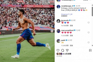 賽后阿勞霍也在社媒曬出進(jìn)球后脫衣慶祝的照片,配文寫道:“永遠(yuǎn)拼盡全力并堅持到最后一刻,加油巴薩!”