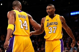 2010年6月17日,湖人和凱爾特人在總決賽中迎來生死戰(zhàn)。比賽到第四節(jié)雙方殺得難解難分,還剩1分鐘時(shí)科比傳球給阿泰斯特,后者投進(jìn)了鎖定勝局的三分,幫助球隊(duì)最終捧起總冠軍獎杯。是役,科比拿下23分,阿泰斯特貢獻(xiàn)全隊(duì)第二高的20分。綠軍雖然首發(fā)五虎全部得分上雙,但還是遺憾落敗。