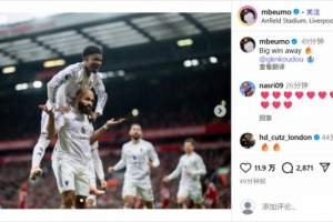 賽后,此役閃擊破門的姆貝莫更新社媒慶祝勝利,他寫道:關(guān)鍵的客場(chǎng)勝利??
