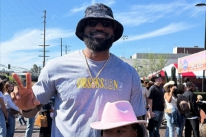 “非常感謝@湖人 他們是一個(gè)如此出色的家族企業(yè),現(xiàn)在又迎來(lái)了新的老板。感謝@東契奇和勒布朗與我的第一個(gè)孫女 @tru_jru_合影,同時(shí)也要感謝奧斯汀·里夫斯與我的女婿互動(dòng)?!贝仁榔綄懙?。