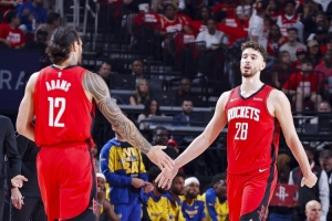 明天上午7點(diǎn)半,NBA揭幕戰(zhàn),火箭將在客場對陣衛(wèi)冕冠軍雷霆?;鸺夷粦?zhàn)首發(fā)是:阿門、杜蘭特、小賈巴里-史密斯、申京和亞當(dāng)斯。