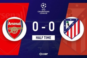 上半場傷停補(bǔ)時(shí)1分鐘,半場結(jié)束,阿森納暫0-0馬競。