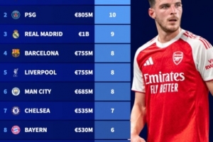 體育資訊10月23日訊 德國轉(zhuǎn)會(huì)市場更新了五大聯(lián)賽球員的最新身價(jià),全球身價(jià)前100名的球員中,阿森納和巴黎圣日耳曼均有10人,兩隊(duì)可以說囤積了非常多的天才球員。