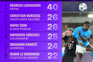 體育資訊10月23日訊 本賽季歐冠聯(lián)賽階段已戰(zhàn)罷3輪,Squawka統(tǒng)計了到目前為止的對抗獲勝榜單,卡拉巴赫后衛(wèi)馬修斯-席爾瓦33次第一,比利亞雷亞爾后衛(wèi)圣地亞哥-穆里尼奧28次第二。