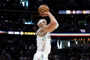 體育資訊10月24日訊 NBA常規(guī)賽,掘金上半場以70-59領(lǐng)先勇士。