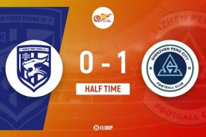傷停補時5分鐘。上半場比賽結束,武漢三鎮(zhèn)0-1深圳新鵬城。
