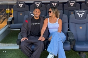體育資訊10月25日訊 拉菲尼亞的妻子娜塔莉亞更新社媒動態(tài),曬出與拉菲尼亞的合照。
