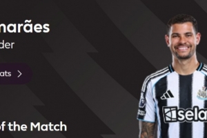 本場(chǎng)比賽紐卡球員吉馬良斯在第90分鐘打進(jìn)絕殺,賽后當(dāng)選英超官方球迷票選全場(chǎng)最佳球員。