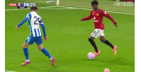 體育資訊10月26日訊 英超第9輪,曼聯(lián)主場迎戰(zhàn)布萊頓,比賽第16分鐘,阿瑪?shù)陆麉^(qū)內被絆倒,裁判沒有判罰。
