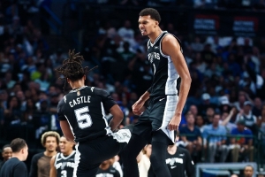 阿里納斯表示:“??怂够貧w后讓誰(shuí)打替補(bǔ),這并不重要,只要場(chǎng)上文班亞馬在那兒就好了。我覺(jué)得馬刺會(huì)打得像德懷特在魔術(shù)時(shí)那樣,只要德懷特在就可以,哪怕上4個(gè)后衛(wèi),曾經(jīng)我、尼爾森、JJ-雷迪克都一起在場(chǎng)過(guò)?!?/p>