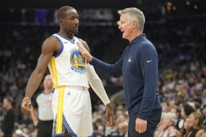“我就是喜歡他的態(tài)度,”科爾說(shuō)道,“我喜歡他帶來(lái)的氛圍。他很自信。在經(jīng)歷了所有合同的事情之后,他絕對(duì)感覺(jué)自己是球隊(duì)的一份子,是我們共同奮斗目標(biāo)的一部分。我認(rèn)為他的隊(duì)友們——吉米、斯蒂芬、德雷蒙德——做得非常好,都張開(kāi)雙臂歡迎他回來(lái),提醒他合同的事就是合同的事?!?/p>