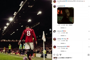本場比賽B費(fèi)也迎來個(gè)人曼聯(lián)生涯300次出場里程碑,他也在個(gè)人社媒曬出本場照片,配文寫道:“以最棒的方式紀(jì)念300場里程碑!”
