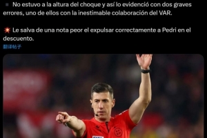 西媒Archivo VAR在賽后為本場比賽主裁判格拉多打分:“災(zāi)難級表現(xiàn),2.5分?!?/p>