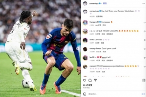 卡馬文加在賽后通過社媒曬出自己同佩德里的對(duì)位照,并配文:“我的俱樂部!享受周日吧,馬德里主義者們!”