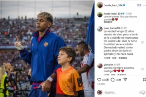 亞馬爾賽前曾公開發(fā)表嘲諷皇馬的言論,但他未能幫助巴薩在國家德比中取勝,亞馬爾的父親穆尼爾社媒連續(xù)發(fā)文安慰兒子:“拉明,孩子你要相信——上帝自有其美意。”