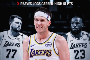 今天里夫斯21投12中,三分10中6,罰球22中21砍下51分11籃板9助攻,正負(fù)值+22,刷新各種紀(jì)錄,助湖人客場(chǎng)127-120力克國(guó)王。