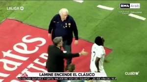 國家德比皇馬2-1戰(zhàn)勝巴薩,兩隊(duì)在賽中和賽后都爆發(fā)了沖突。據(jù)現(xiàn)場鏡頭顯示,佩德里染紅時(shí),維尼修斯在場邊揮舞毛巾慶祝,隨后與巴薩替補(bǔ)席發(fā)生沖突,巴薩教練人員做出“沙灘球”(嘲諷維尼修斯無緣金球)的手勢,費(fèi)蘭和巴爾德上前推搡維尼修斯,盧寧出頭。
