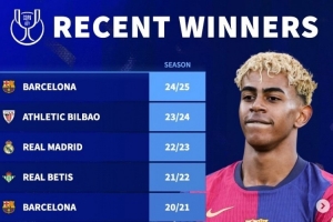 體育資訊10月29日訊 《轉會市場》統(tǒng)計了近10年國王杯奪冠情況,巴薩5次奪冠居首。
