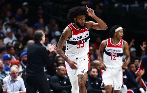 體育資訊10月29日訊 NBA常規(guī)賽,奇才半場(chǎng)72-68領(lǐng)先76人。