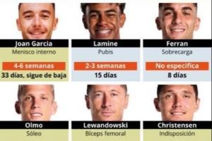 這使巴薩近期不堪重負的傷員名單再添一位。目前,巴薩多名球員仍處于傷缺狀態(tài):特爾施特根、加維、拉菲尼亞、霍安-加西亞、奧爾莫、萊萬多夫斯基、克里斯滕森,如今佩德里也加入其中。