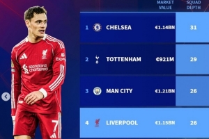 體育資訊10月30日訊 利物浦在本輪聯(lián)賽杯做出大輪換最終主場(chǎng)0-3完敗水晶宮,斯洛特在賽后抱怨球隊(duì)人手不足?!掇D(zhuǎn)會(huì)市場(chǎng)》則統(tǒng)計(jì)了BIG6的陣容深度情況。