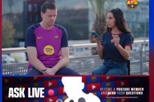 體育資訊10月30日訊 巴薩門將什琴斯尼今日參與了球隊的直播節(jié)目,節(jié)目中他回答了來自球迷的實時提問,還進行了一個快問快答挑戰(zhàn)。