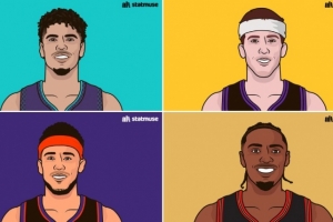 其中拉梅洛-鮑爾在4場(chǎng)比賽的第一節(jié)比賽共計(jì)得到45分,里夫斯在4場(chǎng)比賽的第二節(jié)比賽共計(jì)得到48分,布克在5場(chǎng)比賽的第三節(jié)比賽共計(jì)得到57分,馬克西4場(chǎng)比賽的第四節(jié)則是共計(jì)53分。