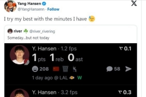 某網(wǎng)友在社媒發(fā)文表示賽季至今的5場比賽小楊得分依次是2分、2分、2分、1分、2分,并配文寫道:“我知道他會打出來,但不是現(xiàn)在!”。假冒楊瀚森賬號則在社媒上回復(fù)道:“我會在能獲得的時(shí)間里用盡全力?!边@一回復(fù)被“Sporting News”的編輯誤以為是楊瀚森本尊于是他們撰寫了新聞并發(fā)出(如下所示)。