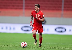 第30分鐘,主隊差一點擴大比分,劉若釩在禁區(qū)弧頂?shù)淖竽_射門擊中了球門立柱。與此同時,客隊中路向前傳球的路線基本被掐斷,只有李提香傳出過一次身后球,米特里策未能將球卸下。這是浙江隊上半場僅有的一次有效將球攻入對方禁區(qū)。