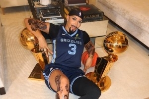 她的模仿對象是他的丈夫波普,她給自己化了個仿妝,弄傷了假胡子,然后穿上了波普的球衣,還搬出了波普的冠軍獎杯。她還用這個造型和波普打了個視頻電話。