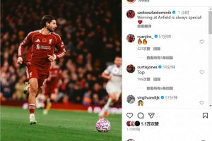 索博斯洛伊當(dāng)選利物浦隊(duì)內(nèi)最佳球員,他在社交媒體上慶祝勝利:“在安菲爾德取勝總是很特別。”