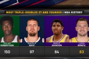 據(jù)統(tǒng)計(jì),東契奇未超27歲(目前26歲254天)已經(jīng)83次砍下三雙,NBA歷史第4,僅次于奧斯卡-羅伯特森(150次)、約基奇(97次)、魔術(shù)師(84次)。