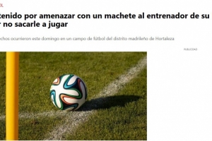 據(jù)馬德里高級警察總局通報(bào),事件發(fā)生在本周日,位于馬德里奧爾塔萊薩區(qū)的一處足球場附近。被捕者與其兒子的足球教練發(fā)生激烈爭吵,多名目擊者向警方證實(shí)該男子曾手持砍刀作出暴力姿態(tài)。
