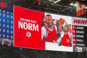 體育資訊11月4日訊 快船主場迎戰(zhàn)熱火,首節(jié)暫停期間,球隊播放了致敬舊將鮑威爾的視頻,鮑威爾也鼓掌致謝。