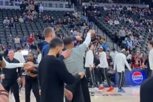 賽前,威少與約基奇在投籃熱身時(shí)親切互動(dòng),兩人短暫寒暄后告別。