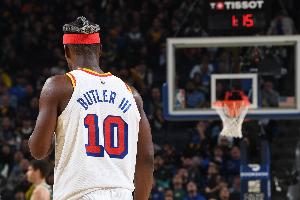 第三節(jié),巴特勒離開(kāi)勇士替補(bǔ)席,回到了更衣室,據(jù)報(bào)道,巴特勒胳膊有些不舒服。