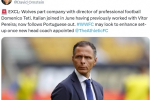 體育資訊11月5日訊 據(jù)知名記者奧恩斯坦報道,狼隊總監(jiān)多梅尼科-泰蒂離職。
