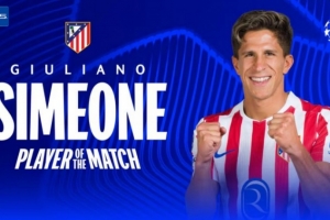 此役朱利亞諾-西蒙尼為馬競(jìng)首發(fā)出戰(zhàn),助攻阿爾瓦雷斯破門(mén),他當(dāng)選本場(chǎng)比賽歐冠官方全場(chǎng)最佳球員。